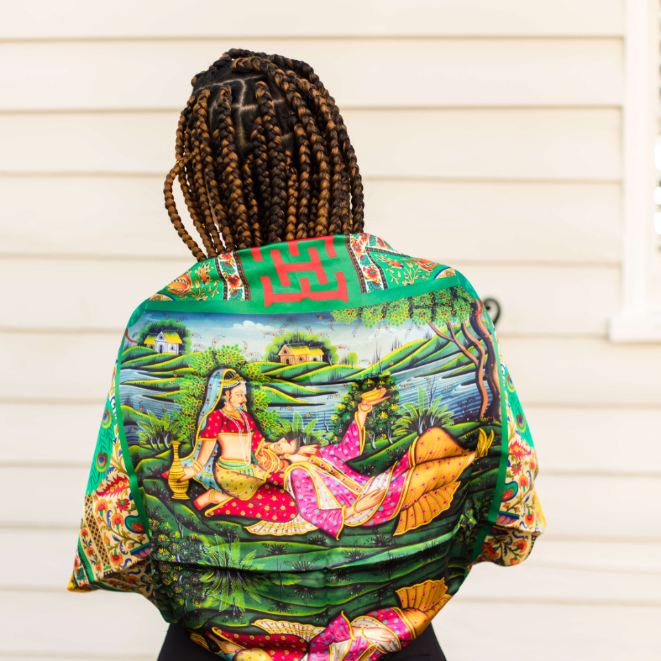 Each design is themed around one of the seven chakras, or spiritually-inspired Mughal Royal Art. Choose the design which expresses the changes you most want to feel. Feeling restless, jealous or insecure? Your root chakra may be blocked and preventing you from feeling grounded. Wrap yourself in the I am Enough scarf, and add elegance to your outfit while placing your intent on being grounded.
